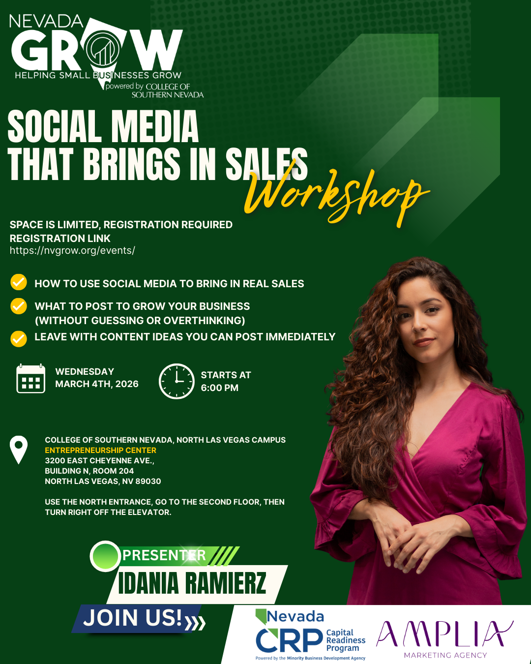 Struggling to know what to post on social media or how to turn followers into customers? This hands-on workshop is designed for small business owners who want to use social media to sell without being overwhelmed. You’ll learn simple, proven strategies to show up online with confidence, attract local customers, and create content that actually supports your business goals.